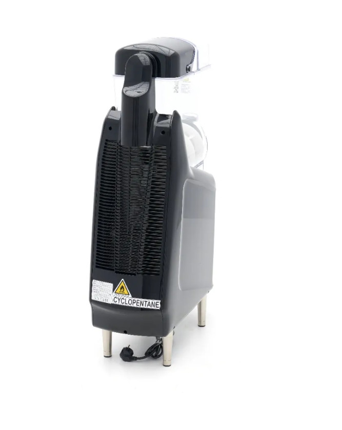 Ez a jégkása gép professzionális konyhai, intenzív és napi használatra készült. A készülék egy nagyméretű tartállyal rendelkezik, és kiválóan alkalmas mind jégkása, mind hűtött italok (pl. gyümölcslevek) felszolgálására. A modern technológiának köszönhetően a gép meleg napokon is egyenletes teljesítményt nyújt.