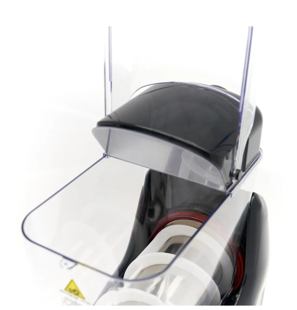 A tisztítás a beépített programnak köszönhetően rendkívül egyszerű. A tartály kiürítése után elegendő langyos vízzel és enyhe tisztítószerrel feltölteni, majd elindítani a tisztító üzemmódot, amely fellazítja a lerakódásokat. A tartály, a csap és a keverőrendszer elemei könnyen leszerelhetők és kézzel elmoshatók. A kivehető csepegtető tálca és a szűrő pillanatok alatt tisztítható, biztosítva a folyamatos, higiénikus munkavégzést.