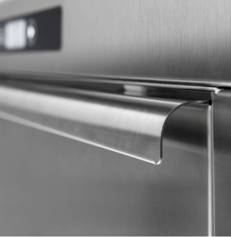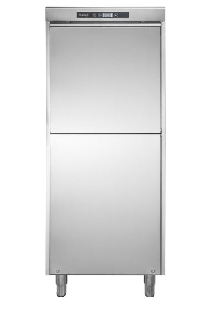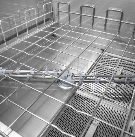 A gép duplafalú szerkezete teljes egészében AISI 304 (18/10) rozsdamentes acélból készült. A szervizelés megkönnyítése érdekében minden fő alkatrész a készülék elejéről könnyedén hozzáférhető. A két, egymástól függetlenül működő mosószivattyú minden körülmények között garantálja a megbízható és folyamatos teljesítményt.
