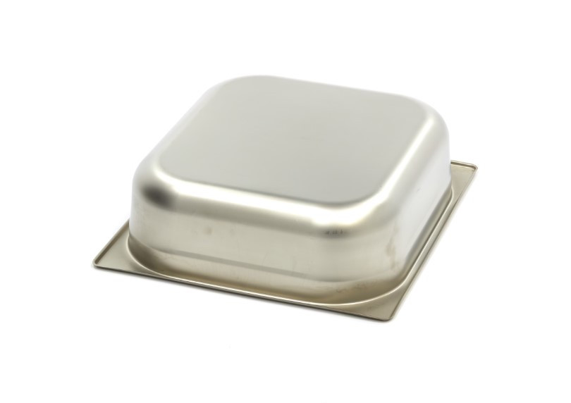 Ez a 2/3 méretű Gastronorm edény 10 cm mélységgel és 9 literes űrtartalommal rendelkezik. A 32,5 x 35,4 cm-es méretű rozsdamentes acél edény rakásolható és mosogatógépben tisztítható. Ez a GN edény ideális választás mindenféle vendéglátóipari berendezéshez, például sütőkhöz vagy bain marie-khez.