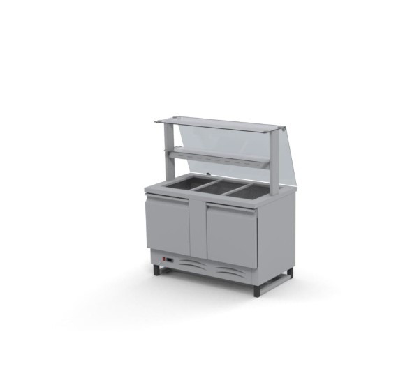Hűtőpult 3xGN1/1 üveges felépítménnyel üvegpolccal alsó hűtött tárolóval
