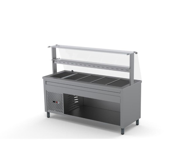 - Digitális vezérlés (4-8 °C), három oldalon burkolt, a kiszolgáló tér felől nyitott, alsó polc.