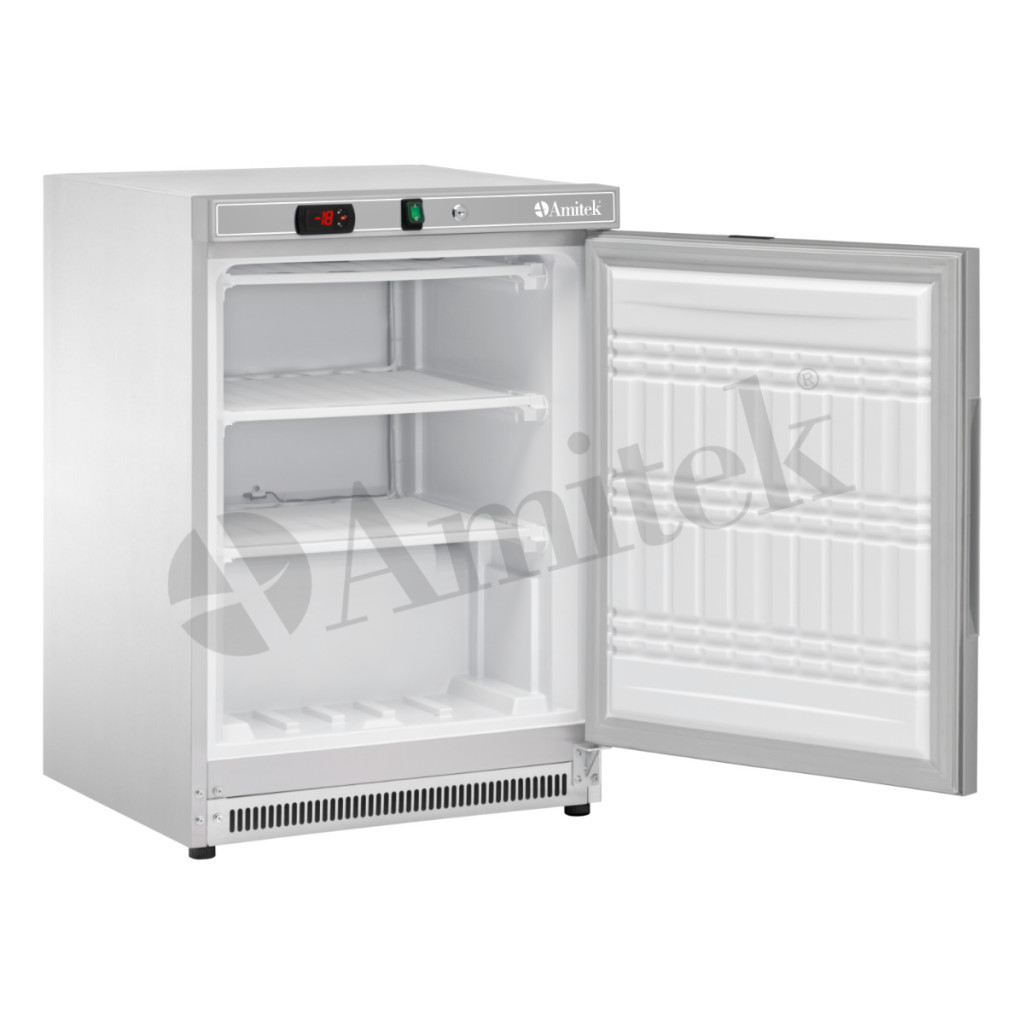 AKM sorozatú statikus fagyasztószekrény. A külső és belső szerkezet rozsdamentes acélból készült. A hűtés statikus, a polcokon keresztül történik. A leolvasztás manuális. Az ajtó nyitási iránya megfordítható. A szigetelés vastagsága 60 mm. A mágneses tömítés könnyen eltávolítható. Az ajtó kulccsal zárható. A készülék 2 darab fix ráccsal, 2 állítható lábbal a szintezéshez, valamint 2 rögzített hátsó kerékkel van felszerelve.