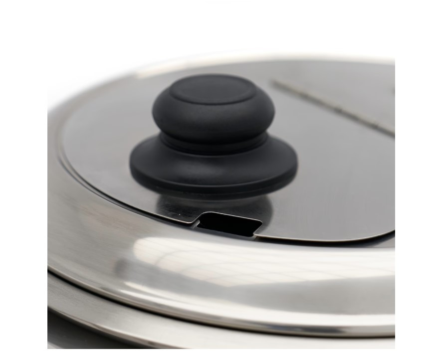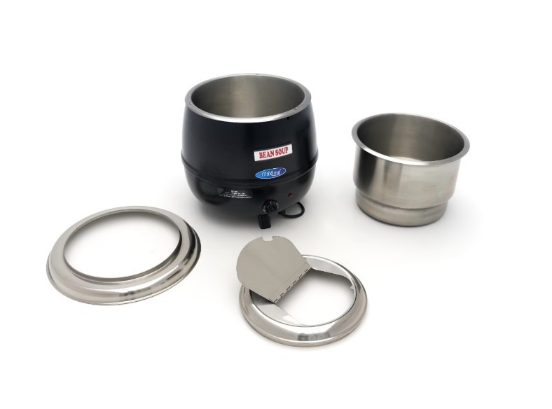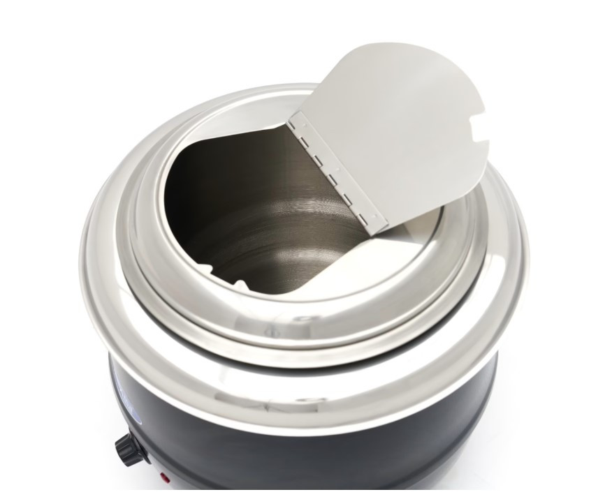 Ez a professzionális, 13 literes levesmelegítő ideális választás önkiszolgáló pultokhoz és gyors kiszolgáláshoz. A készülék praktikus, felnyitható fedéllel és kivehető rozsdamentes acél belső tartállyal rendelkezik. A fekete alumínium burkolat elegáns megjelenést biztosít, miközben a készülék könnyen tisztán tartható.
