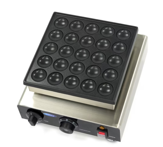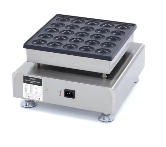 Ez a professzionális elektromos mini palacsintasütő gép hatékony és megbízható megoldást kínál éttermek, étkezdék, cukrászdák, valamint piaci és vásári kitelepülések számára. A termék egy sütési ciklus alatt 25 darab, egyenként Ø 45 mm méretű mini palacsinta gyors és egyenletes elkészítésére alkalmas.