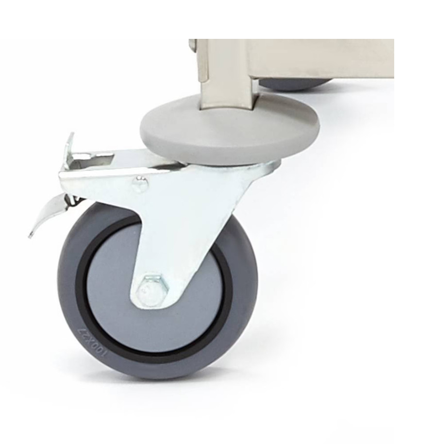 Higiénikus kialakítás Mivel az egység teljes egészében kiváló minőségű rozsdamentes acélból készült, tisztítása rendkívül egyszerű. Egy vödör vízzel, kevés enyhe tisztítószerrel és egy nedves ruhával a kocsi könnyedén áttörölhető. A cseppmentes száradás és az esztétikus megjelenés érdekében törölje át a felületeket egy száraz, puha ruhával a tisztítás végeztével. A kocsi mozgatása a takarítás során sem okoz gondot a praktikus forgókerekeknek köszönhetően, így a padló takarítása is akadálymentes marad.