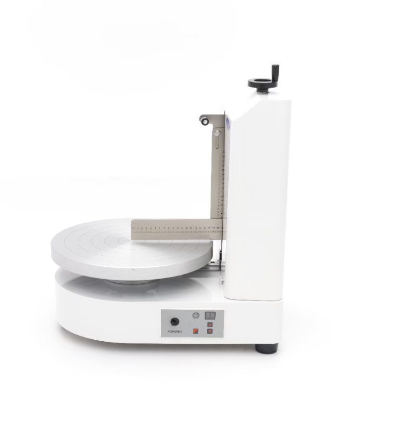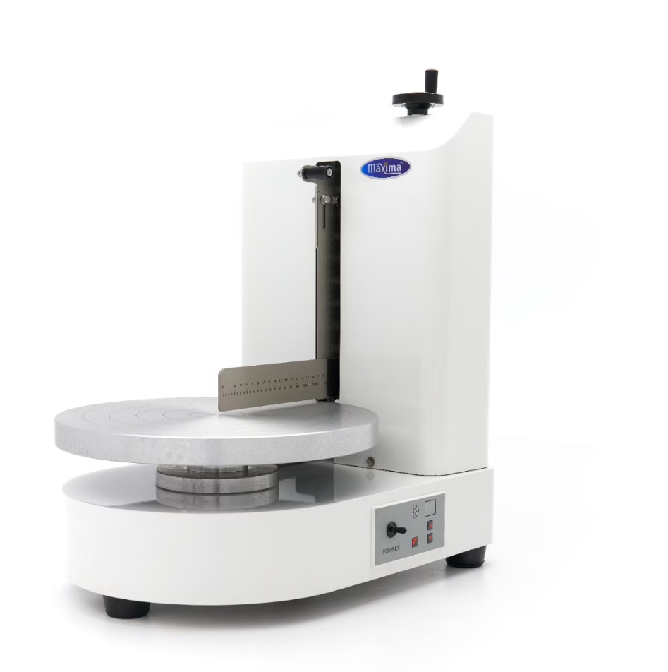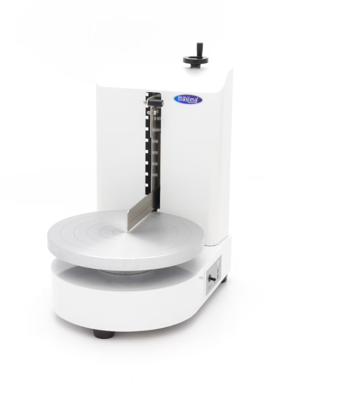 Könnyedén simítsa el tortáit ezzel a tortadíszítő géppel. A torta egyenletesen forog egy platformon, miközben a függőleges és vízszintes kések gondoskodnak arról, hogy minden felesleges cukormázat/mázat eltávolítsanak, így rendezett oldalt és tetejét hozzák létre. A gép 40-225RPM között állítható sebességgel is rendelkezik, és 10 fokozatban állítható. A forgótányér mindkét irányba forgatható.