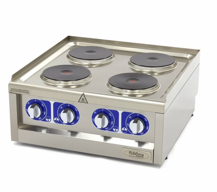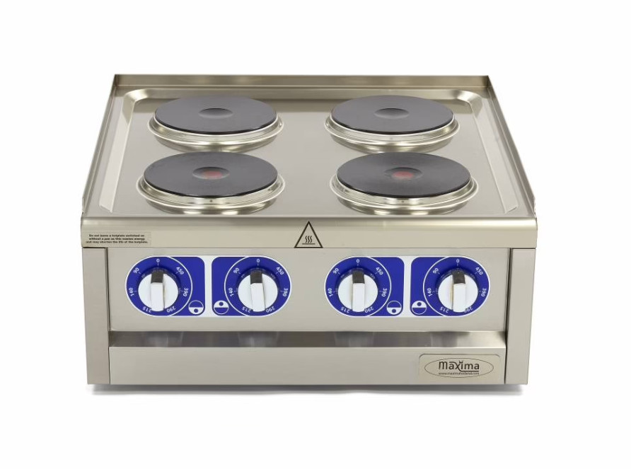 Ez az elektromos tűzhely kiválóan alkalmas professzionális konyhai, intenzív és napi használatra. A tűzhely négy főzőlappal rendelkezik, és főzősorba illeszthető. A rozsdamentes acél konstrukciónak köszönhetően a tisztítása is egyszerű.