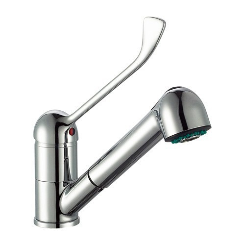 Csaptelepek és zuhanyok - Asztali keverő csaptelep orvosi karral és kihúzható zuhanyfejjel