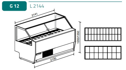 Elegáns üvegezés: Átlátszó üvegtartó szerkezet (nem elérhető a CBM modellhez polietilén 300 RAL 9006 támasztékkal). Edzett első üveg gázdugattyúkkal lefelé nyíló mechanizmussal. LED világítás a tetőn és a kiállító polcokon a fagylaltok vonzó megjelenítéséért. Hátsó zárás plexi tolóajtókkal vagy (opcionálisan) rolós függönnyel, csak lineáris modelleknél.
