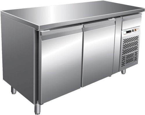 AISI 304 rozsdamentes acélból készült, ventilációs hűtéssel rendelkező két ajtós fagyasztott munkaasztal.