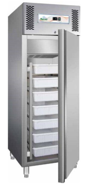 GN 2/1 méretű, AISI 304 rozsdamentes acélból készült hűtőszekrény. Statikus hűtés.