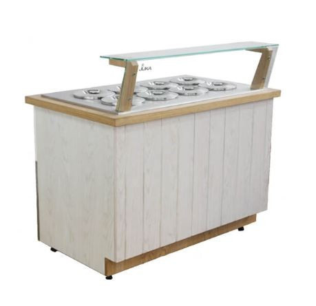 Statikus hűtésű, 6 tégelyes fagylalt pult.