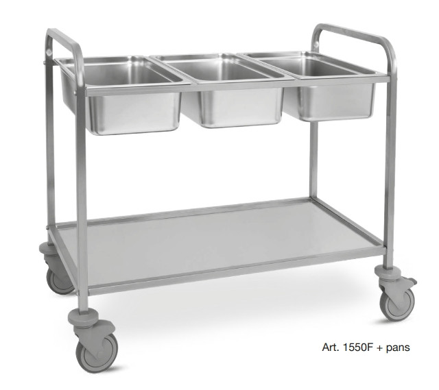 Felső polc akár 3 darab 1/1 GN méretű (20 cm mély) edényhez (nem tartozék): Praktikus tárolási lehetőség a különböző konyhai alapanyagok és készítmények számára a kocsikon.