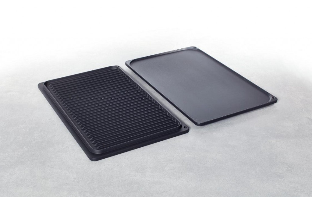 A grillező és sütőlap segítségével tökéletes grillmintát hozhat létre sülteken, halakon és zöldségeken. A hátoldalon körülfutó szegélynek köszönhetően kiválóan alkalmas sok zsírt és folyadékot kibocsátó élelmiszerek sütéséhez. Rendkívül erős és tartós. A TriLax tapadáságátló bevonat barnítást támogató hatású.