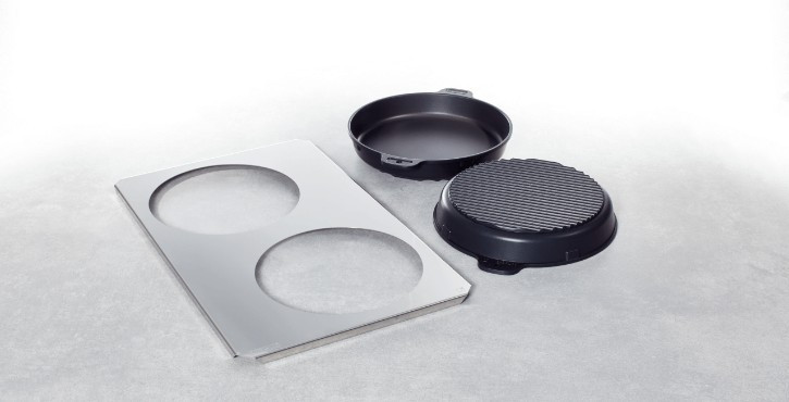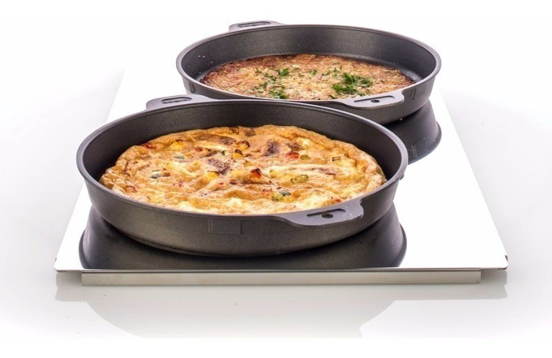 A sütőserpenyő és tepsivel sokféle ételt pl.: tortilla, paella, svájci röszti, quiche, fánk, illetve kis pizzák, kalácsok stb. készíthető el néhány perc alatt. A hullámos alj gondoskodik az egyenletes barnulásról, a TriLax tapadásgátló bevonat pedig megakadályozza a termékek letapadását. Átmérő: 16 cm A tartólemezek nagy töltési mennyiségek egyszerű és biztonságos kezelését teszi lehetővé.