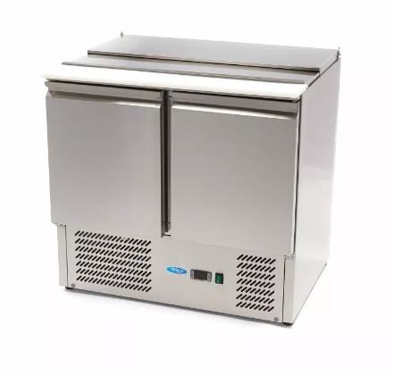 A professzionális salátás hűtő minden vendéglátóipari konyhában jól jöhet, különösen salátákat vagy szendvicseket készítéséhez. Ez salátás hűtő két rozsdamentes acél ajtóval rendelkezik és a tetején egy műanyag vágódeszkával van felszerelve. Ajtónként egy polcot talál, amelynek magassága állítható. Ez a professzionális konyhai készülék 257 literes űrtartalmú és alkalmas Gastronorm tartályokkal való használatra. Ezeket a készülék ára nem tartalmazza.